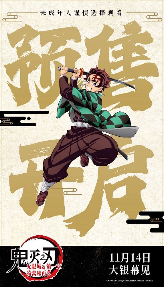 电影《鬼灭之刃:无限城篇 第一章 猗窝座再袭》由中国电影集团公司进口,中国电影产业集团股份有限公司发行并译制,上海猫眼影业有限公司协助推广。影片预售已开启,即将于11月14日中国内地上映,敬请期待。